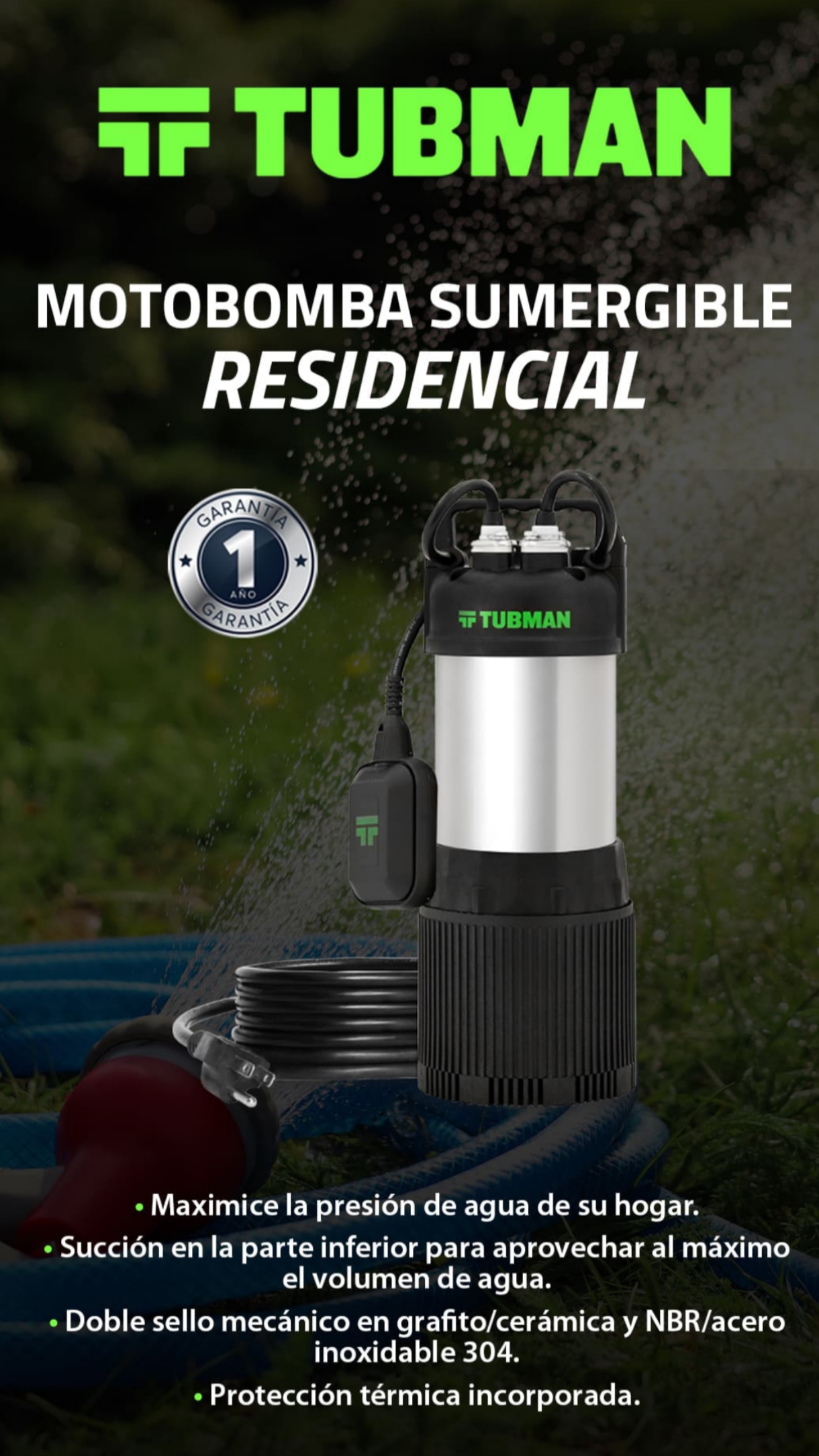 Bomba sumergible Tubman TM-S3-50A-1127 3/4 hp 1f 127v