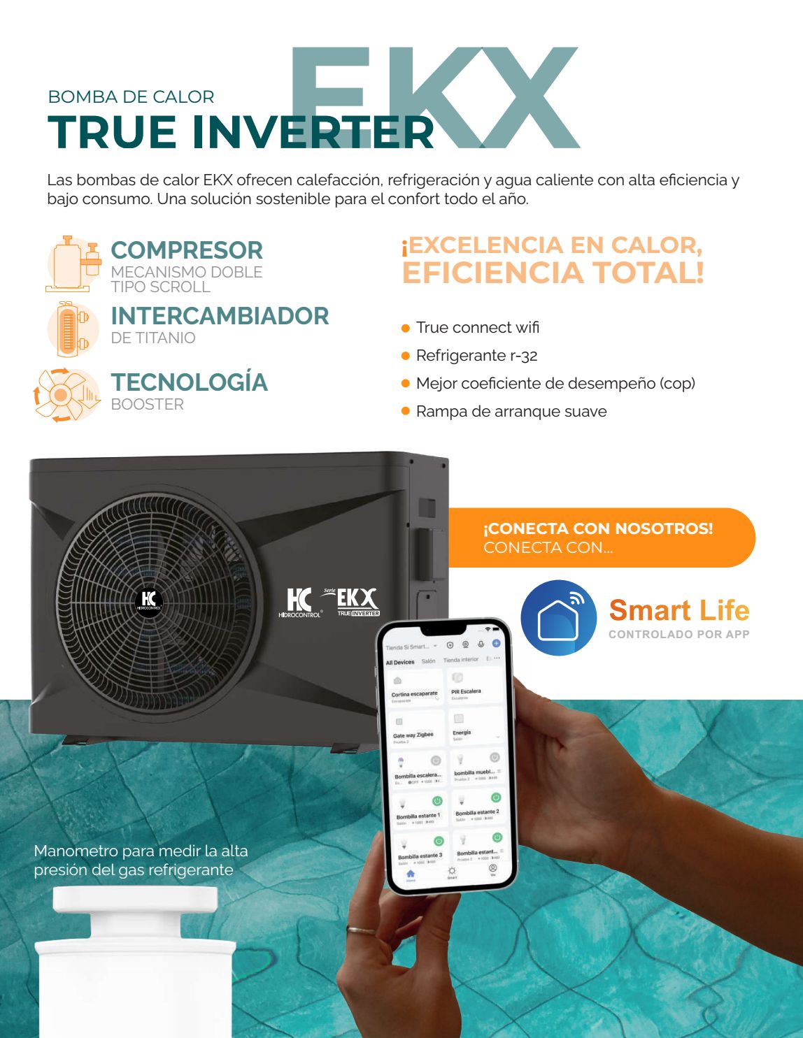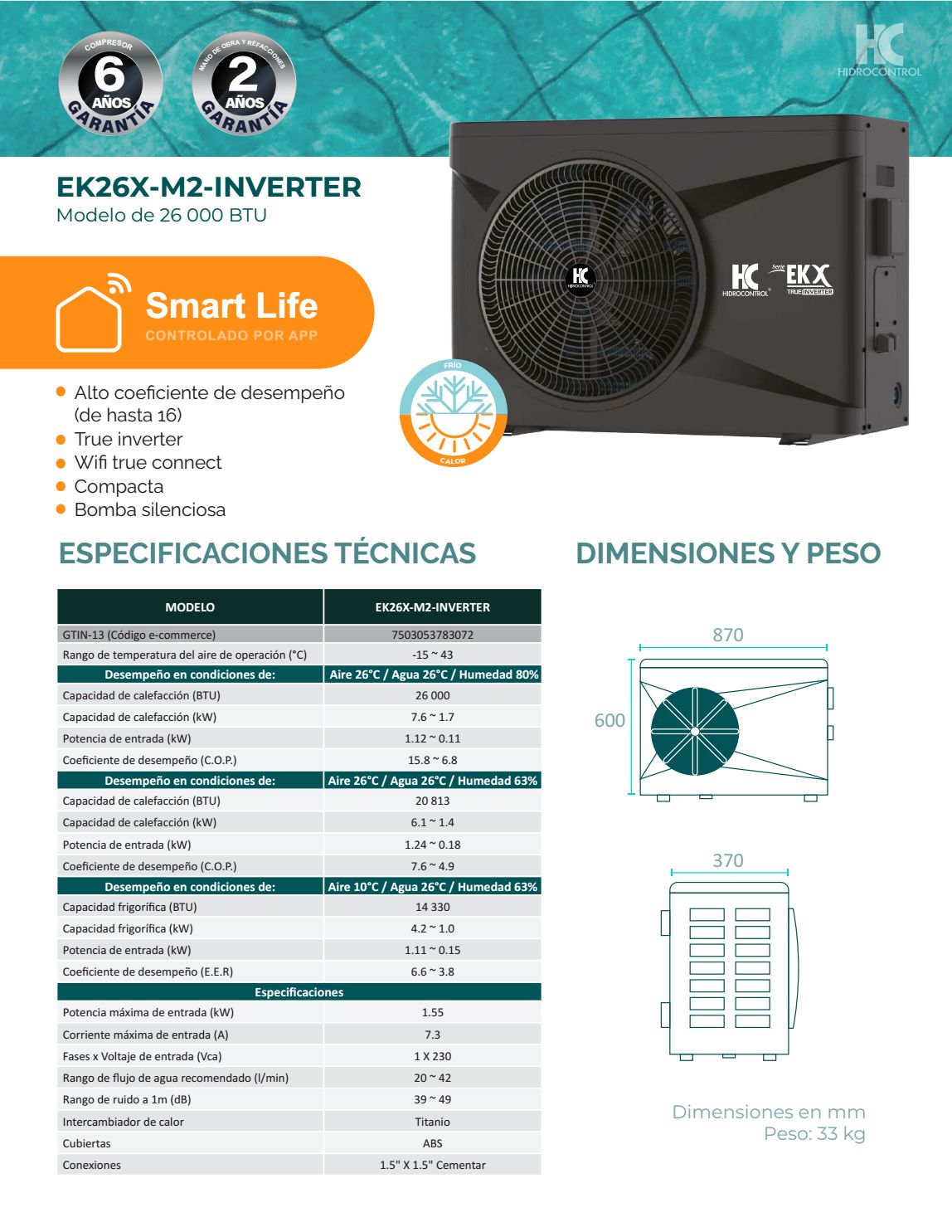 Bomba de calor inteligente Hidrocontrol EK26X-M2-INVERTER 26,000 BTU 1f 230v
