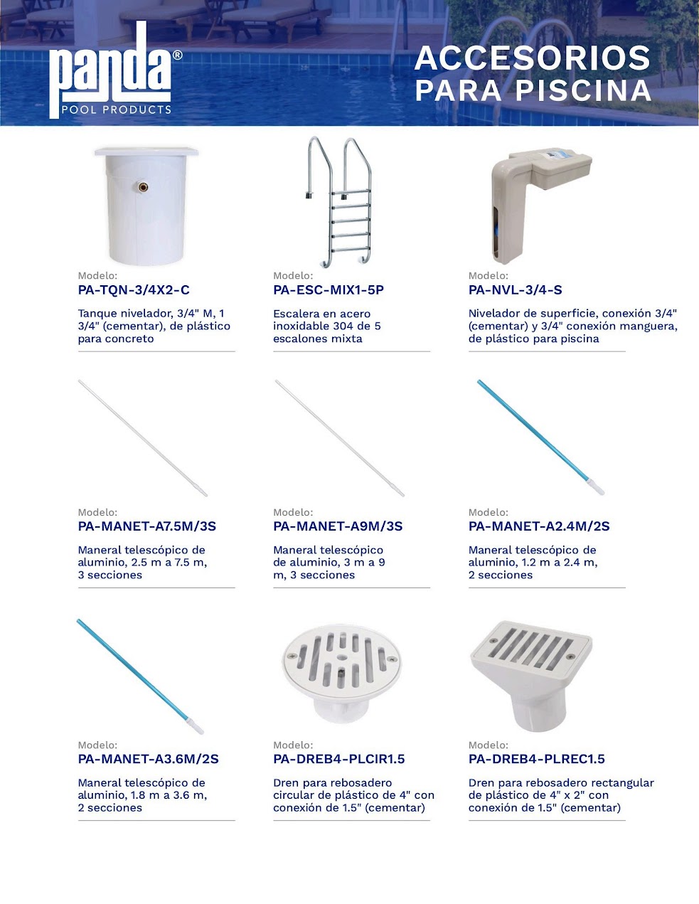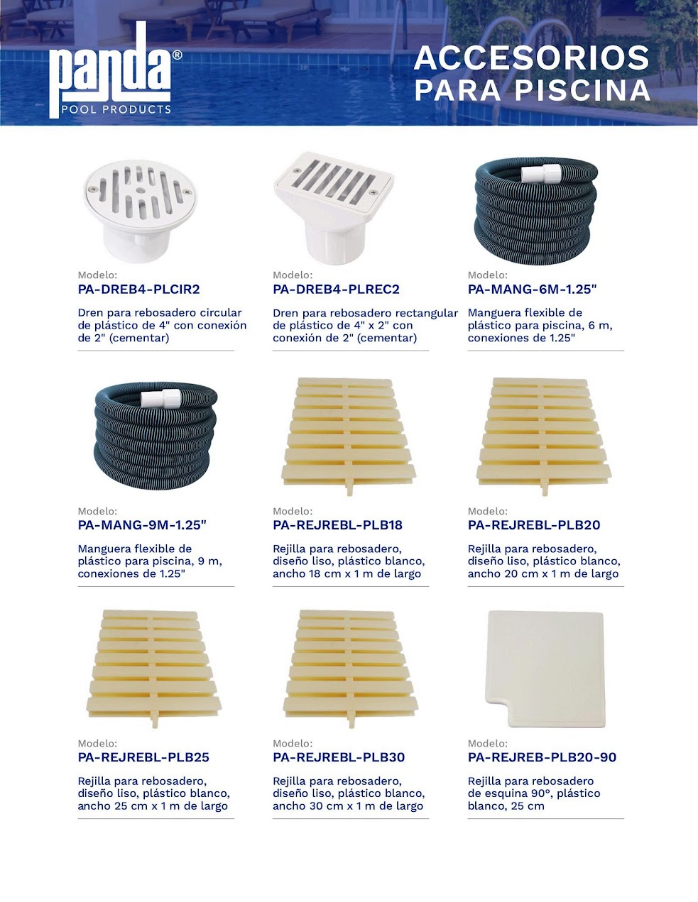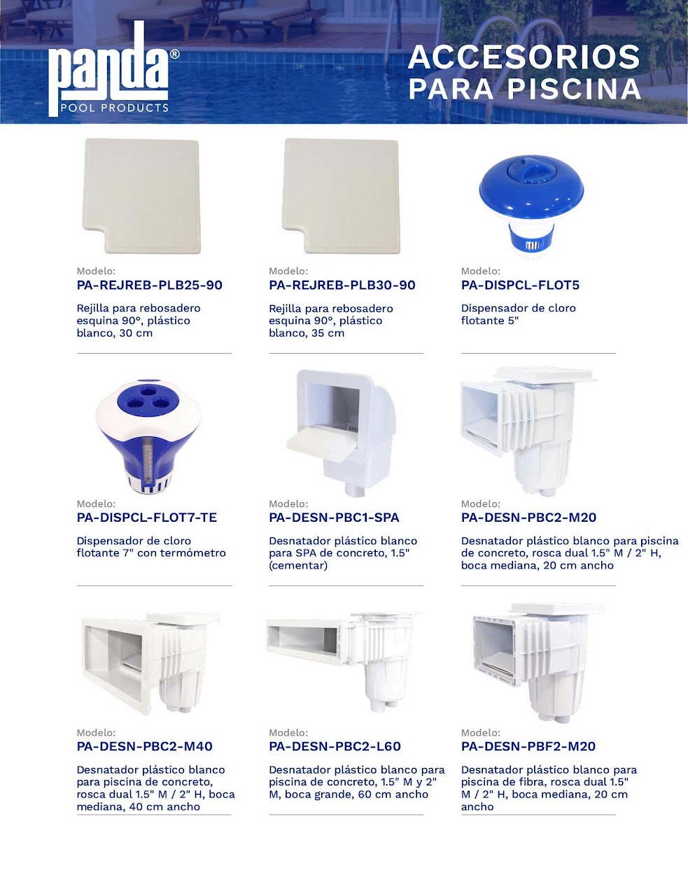 Desnatador de tapa cuadrada con canastilla para piscina marca Panda serie PA-DESN-PBF1.5-S15 15 cm ancho