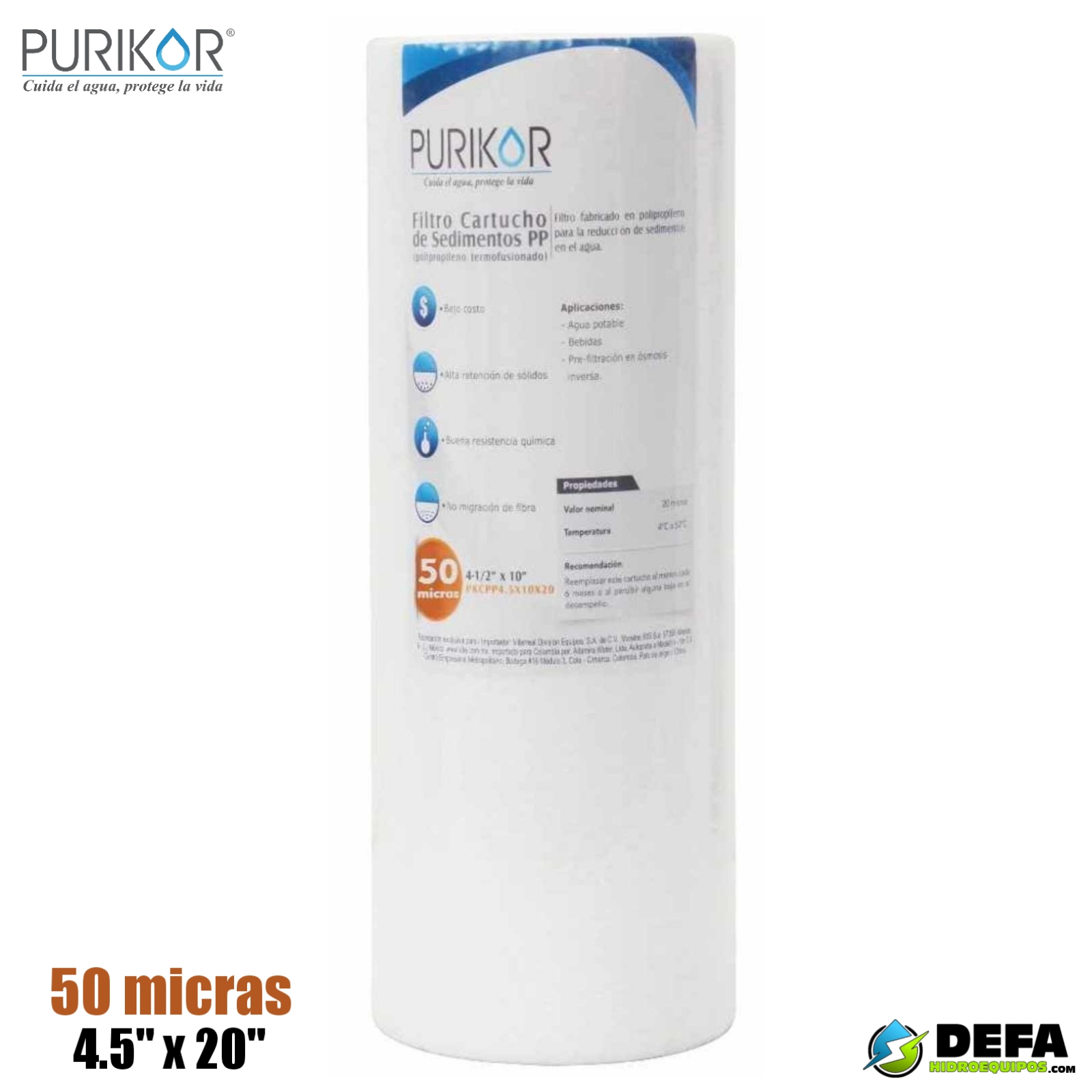 Filtro Cartucho de Polipropileno Termofusionado Purikor PKCPP4.5X20X50