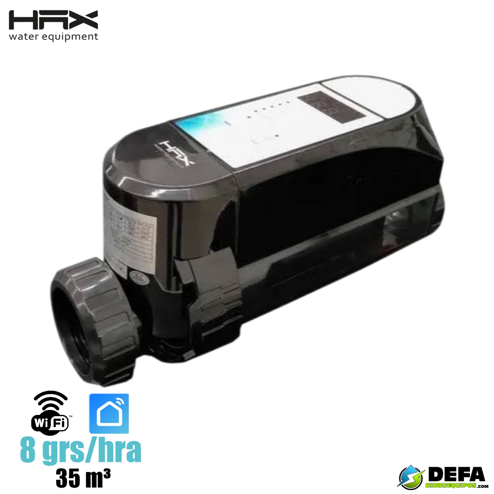 Generador de cloro marca HAX serie ECPRO08 inteligente pro 8grs/hra 35m3 wifi y app