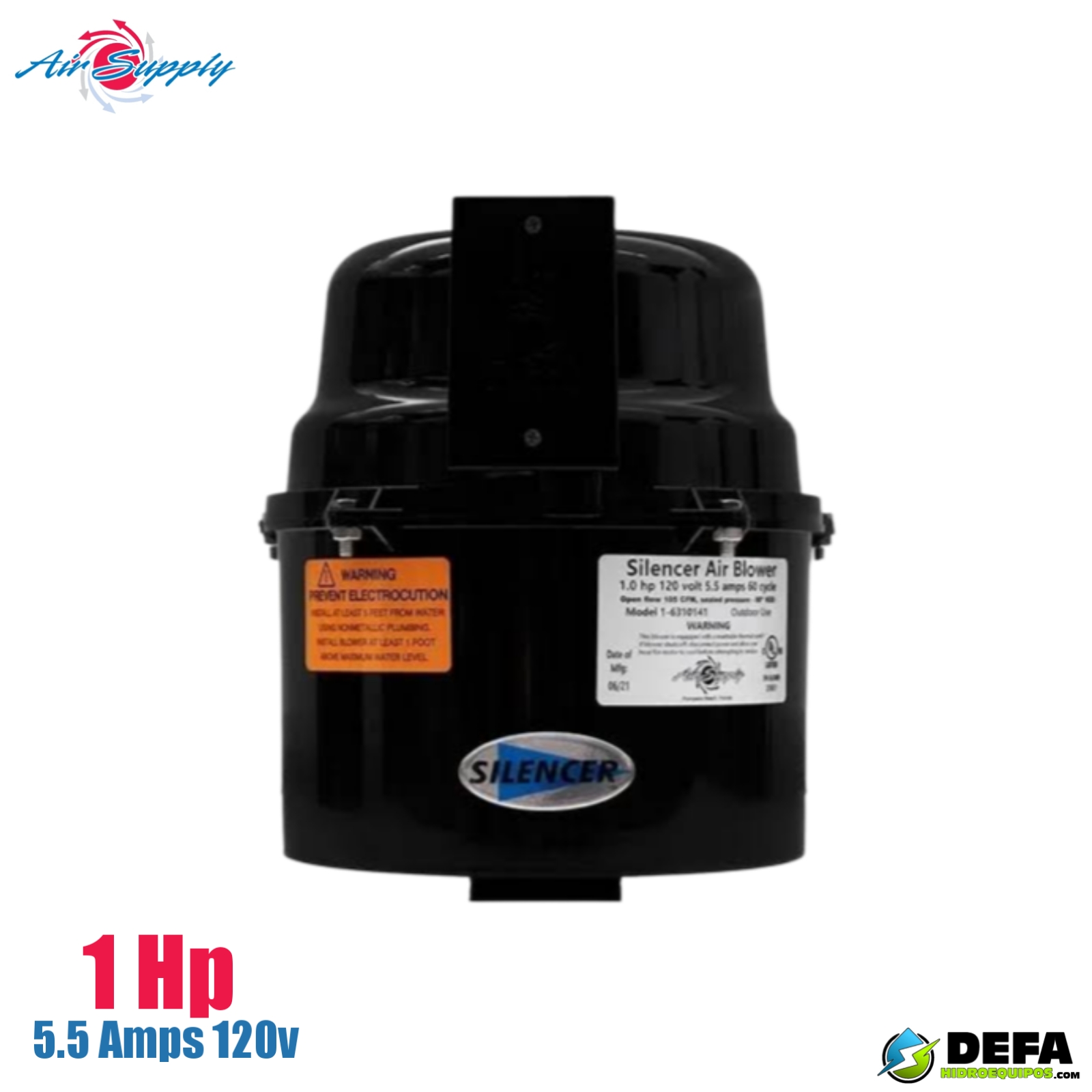 Soplador silencer marca Air Supply serie 6310141 1 hp 5.5 amp 120v cantidad