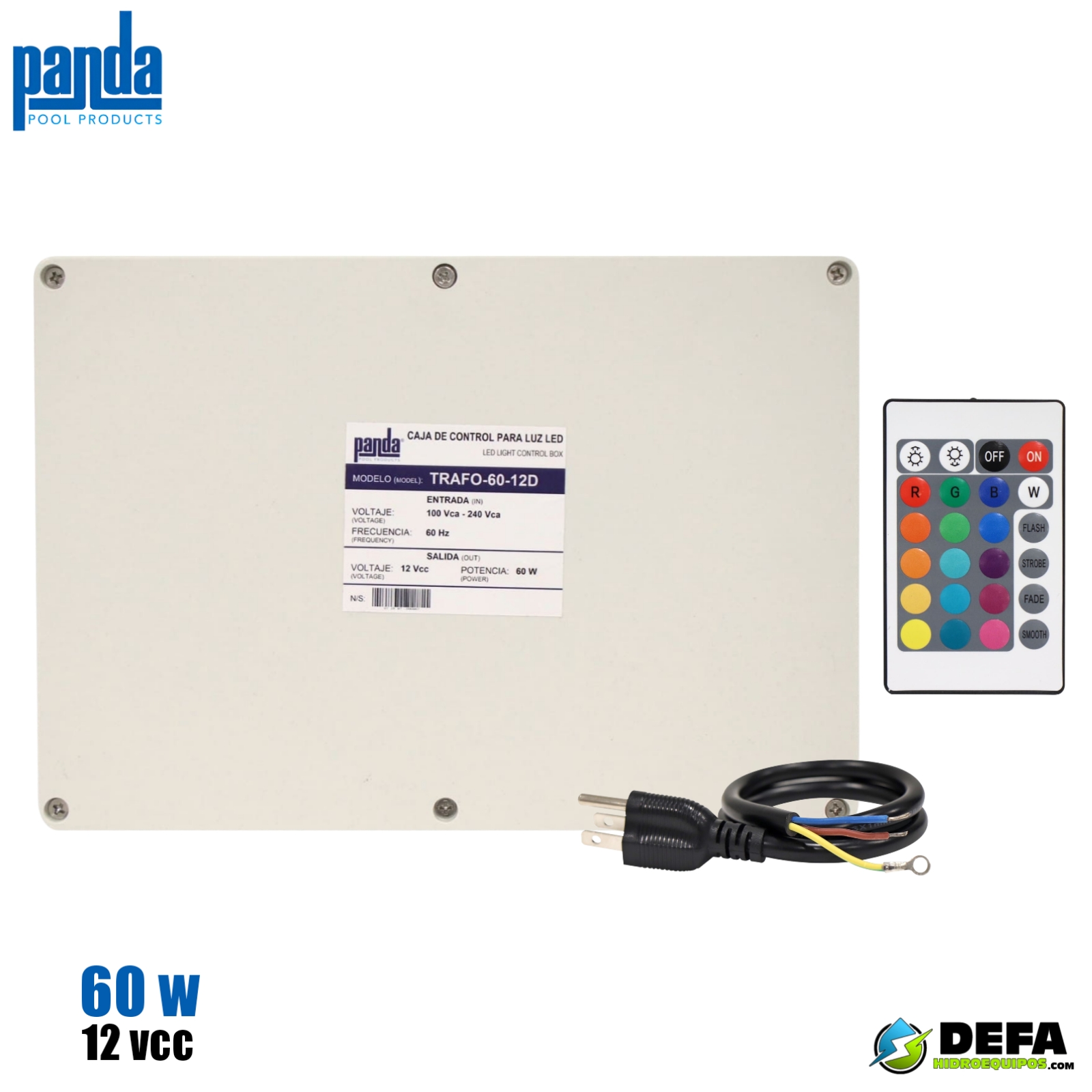 Transformador para lampara LED marca Panda serie TRAFO-60-12D 12 vcc 24w